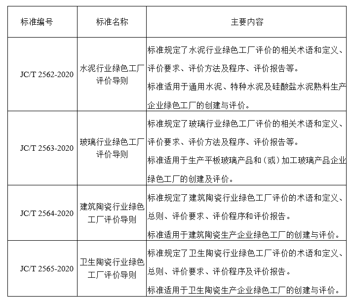 國建聯信認證中心作為主要起草單位參與制定的水泥、玻璃、建筑陶瓷及衛生陶瓷行業綠色工廠評價導則四項標準經過近三年的研制,本次正式發布。將于2020年10月1日正式實施。