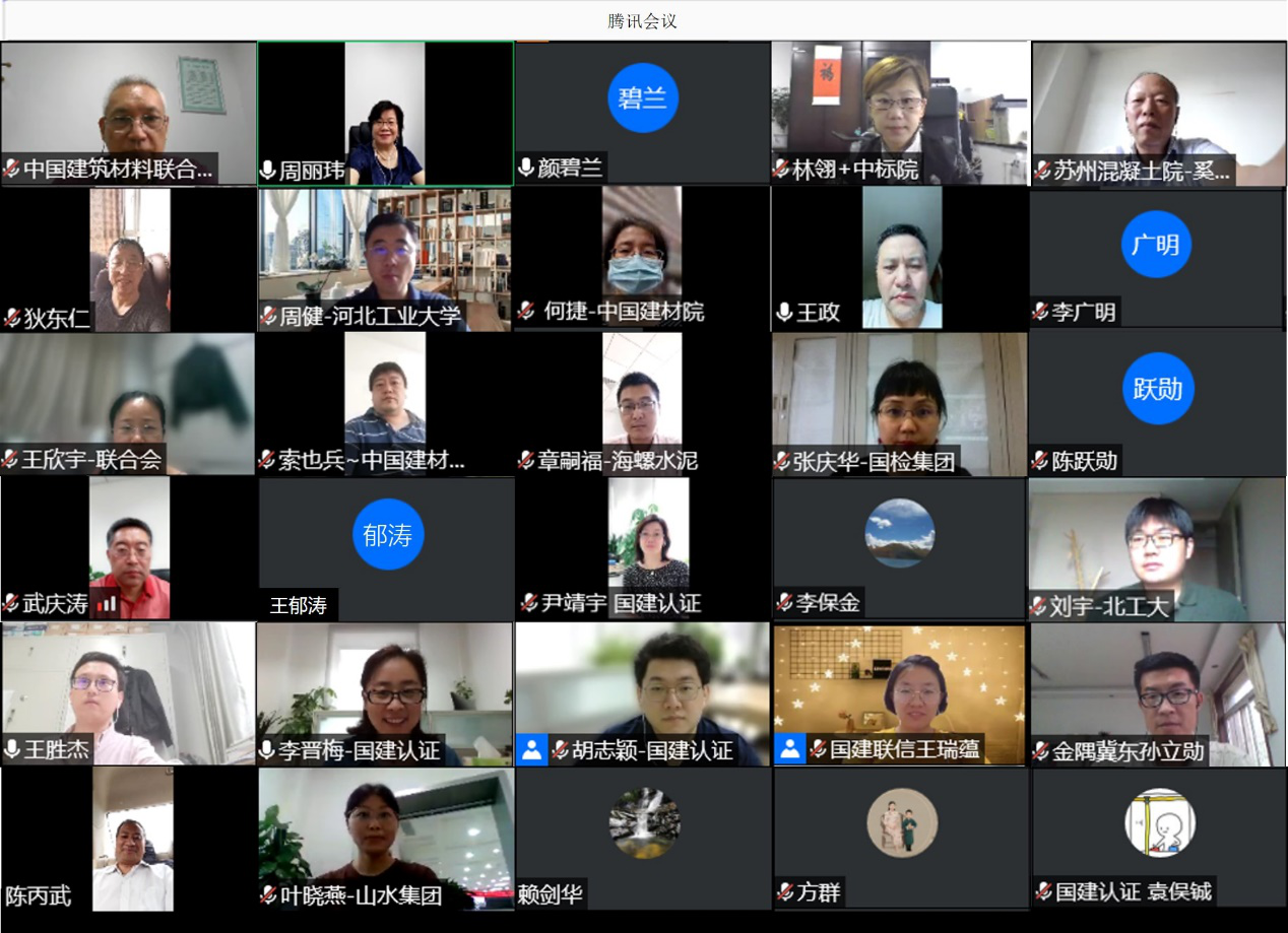 2020年8月13日,中國建筑材料聯合會在線上組織召開《綠色設計產品評價技術規范 水泥》建材行業標準審查會,會議由中國建筑材料聯合會科技教育委員會秘書長周麗瑋教授主持。標準完成單位北京國建聯信認證中心總經理武慶濤等領導出席會議并致辭。