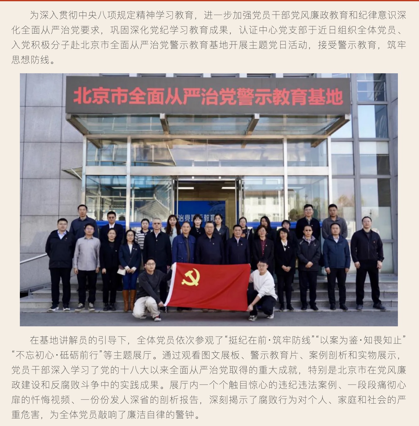 認(rèn)證中心黨支部赴北京市全面從嚴(yán)治黨警示教育基地開展深入貫徹中央八項(xiàng)規(guī)定精神學(xué)習(xí)教育主題黨日活動(dòng)