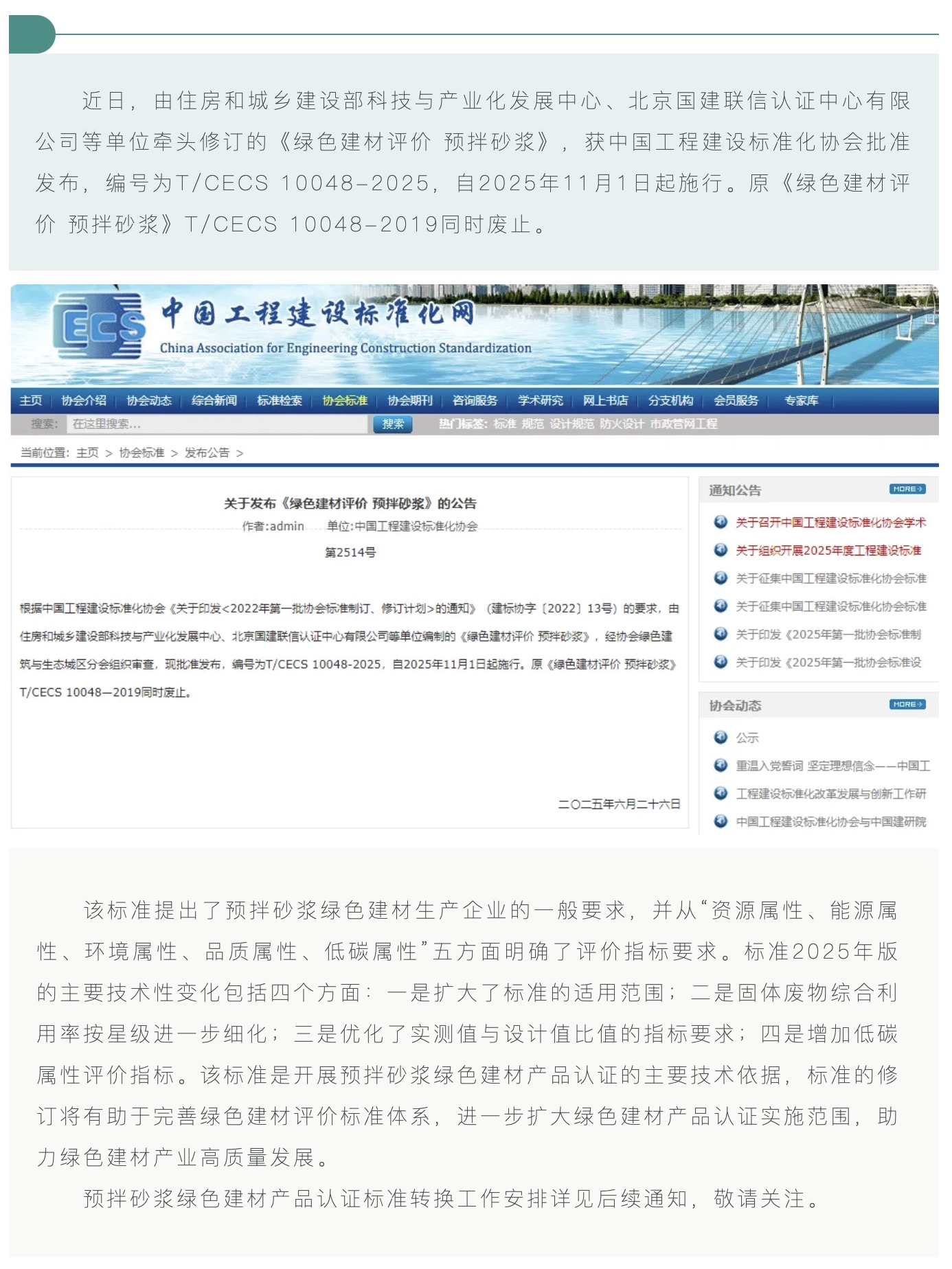 國(guó)建認(rèn)證聯(lián)合修訂的《綠色建材評(píng)價(jià) 預(yù)拌砂漿》標(biāo)準(zhǔn)獲批發(fā)布