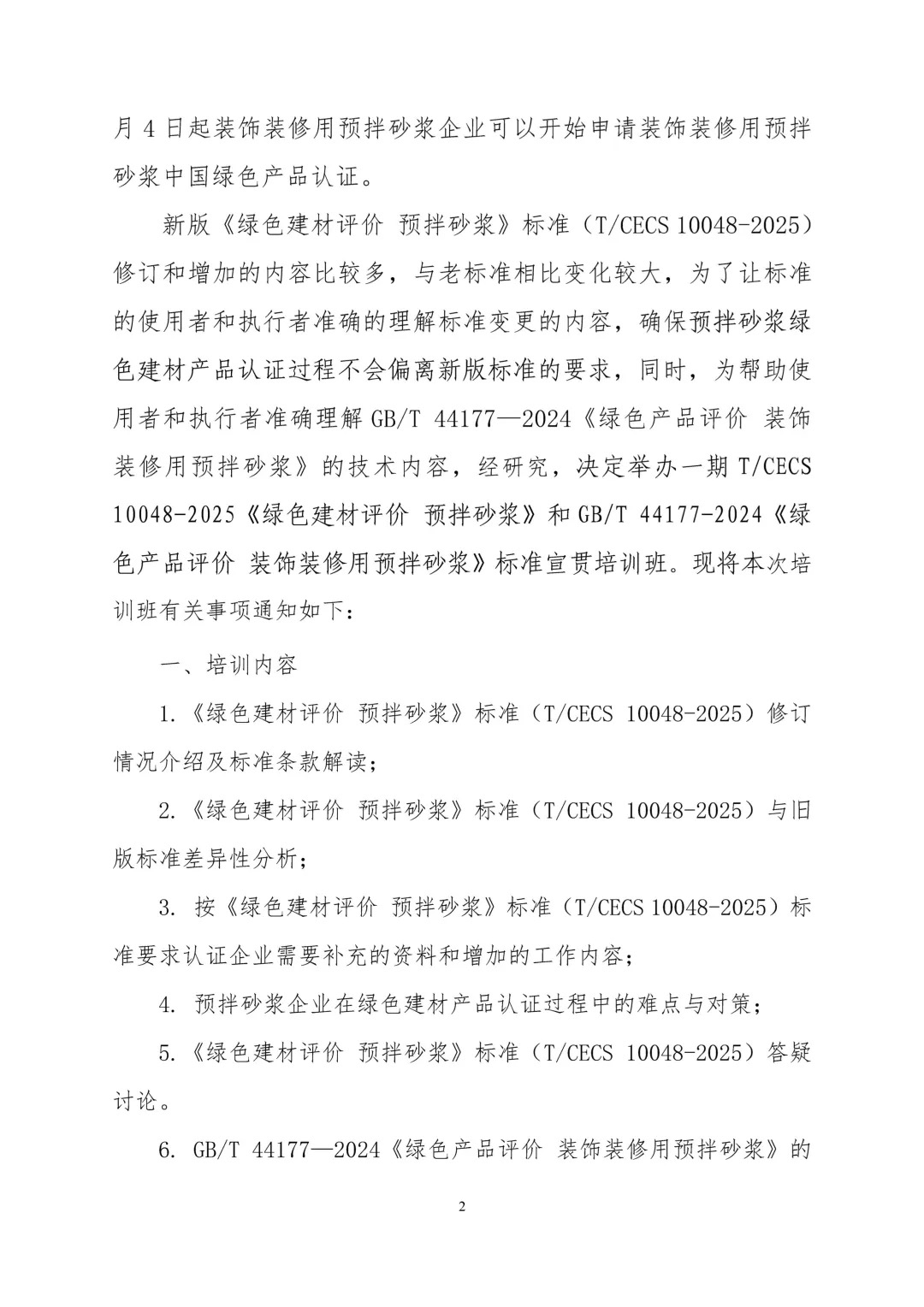 關(guān)于舉辦新版《綠色建材評價(jià) 預(yù)拌砂漿》和《綠色產(chǎn)品評價(jià) 裝飾裝修用預(yù)拌砂漿》國家標(biāo)準(zhǔn)宣貫培訓(xùn)班的通知