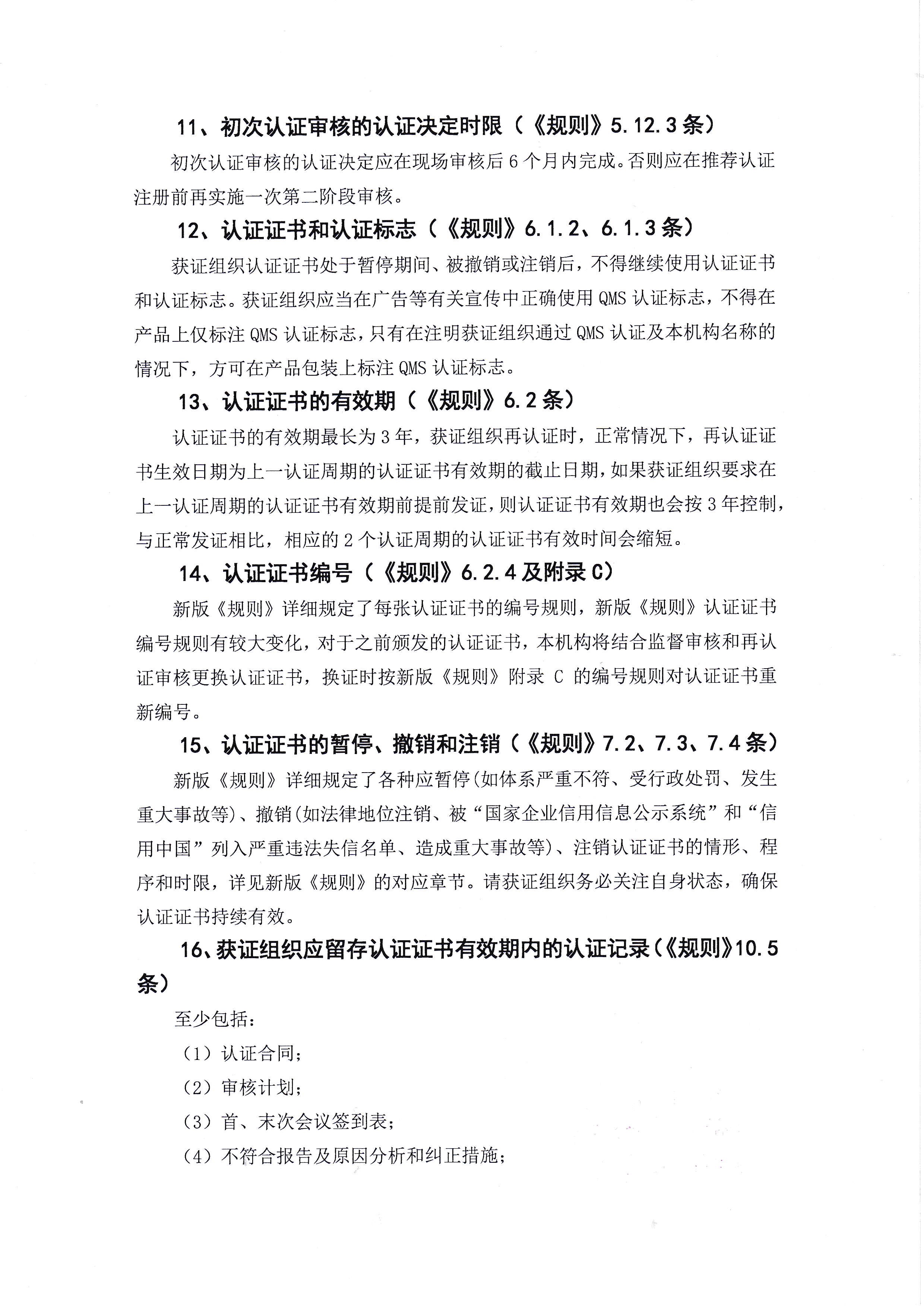 新版《質量管理體系認證規則》客戶須知