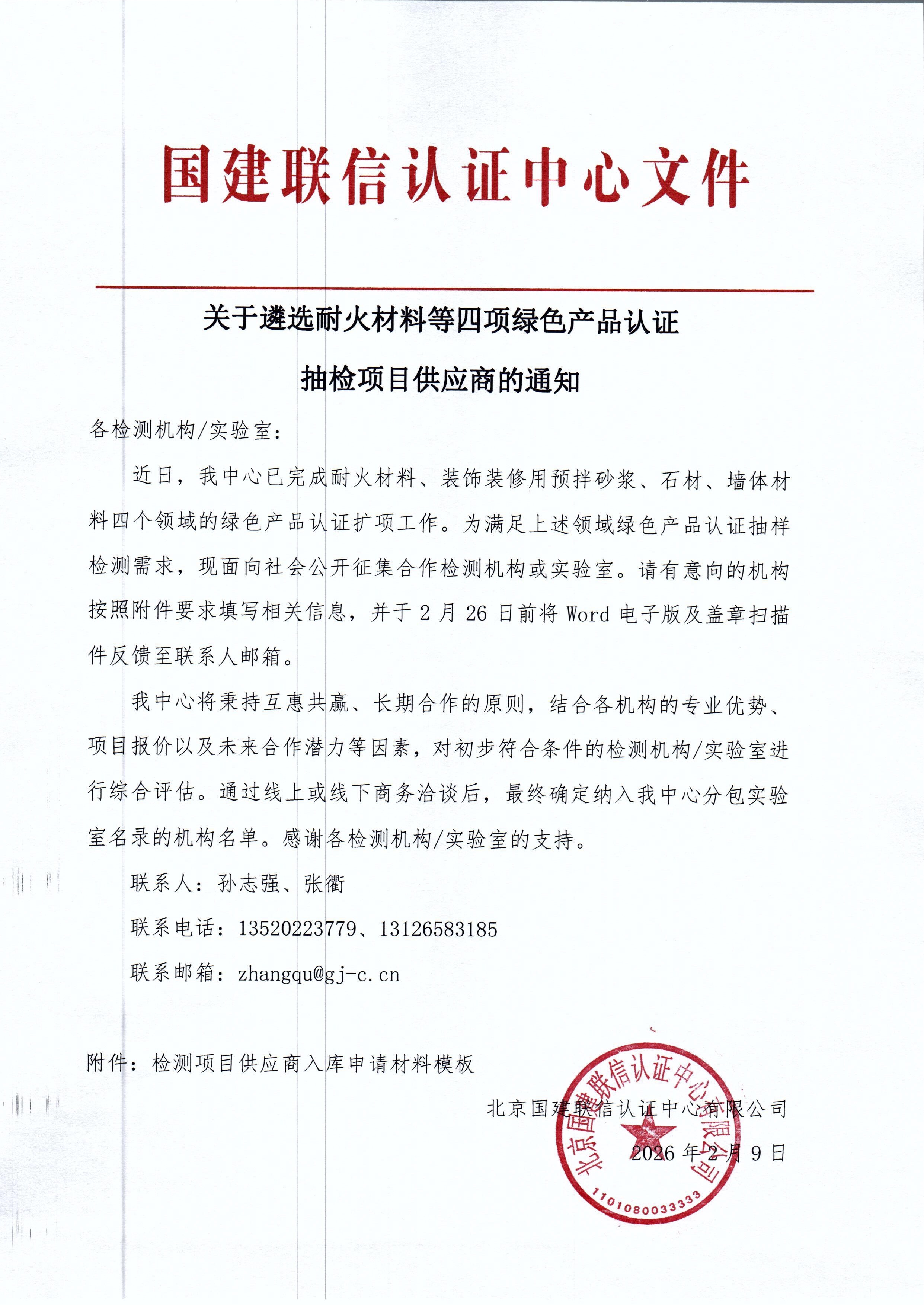關(guān)于遴選耐火材料等四項(xiàng)綠色產(chǎn)品認(rèn)證 抽檢項(xiàng)目供應(yīng)商的通知