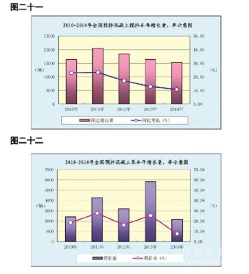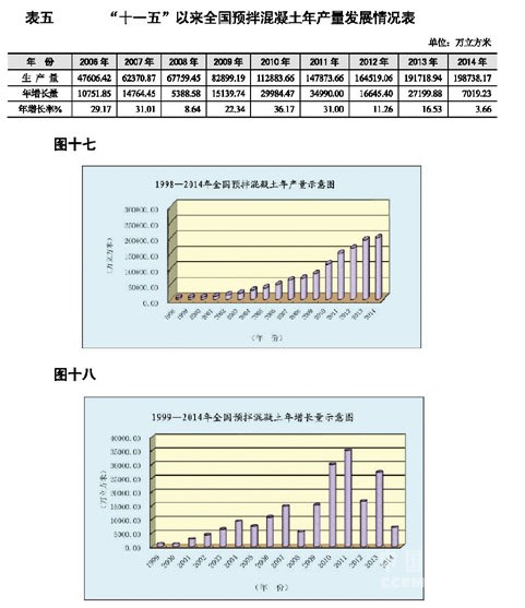 2014年末全國擁有預(yù)拌混凝土生產(chǎn)企業(yè) 10140個(gè),比上年末增加1040個(gè),增長(zhǎng)11.43%;從業(yè)人員51.74萬人。年設(shè)計(jì)生產(chǎn)能力64.7億立方米,同比新增產(chǎn)能11.9億立方米,增長(zhǎng)22.62%。全年生產(chǎn)預(yù)拌混凝土19.9億立方米,比上期19.2億立方米增加0.7億立方米,增長(zhǎng)3.66%,比上年增長(zhǎng)率16.53%回落12.87個(gè)百分點(diǎn),年增長(zhǎng)率為1998年以來最低。據(jù)測(cè)算,全年預(yù)拌混凝土主營(yíng)業(yè)務(wù)收入達(dá)6000多億元,實(shí)現(xiàn)利潤(rùn)總額約400億,主營(yíng)業(yè)務(wù)收入與利潤(rùn)增速均低于上年,行業(yè)盈利為歷史最低水平。預(yù)拌混凝土企業(yè)應(yīng)收賬款回收難的現(xiàn)象普遍,并且由此形成的風(fēng)險(xiǎn)越來越大,應(yīng)收賬款甚至能占到企業(yè)營(yíng)業(yè)收入的一半左右。