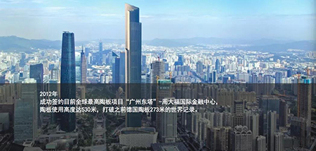 此次發布的大規格(1米X 3米)陶板新品,不但突破了傳統的生產工藝,掌握了陶板大板的核心技術,還創造了領航高端幕墻陶板市場的奇跡;填補了建筑幕墻材料的空白,開創了新時期建陶行業的又一個藍海市場。 ![]()