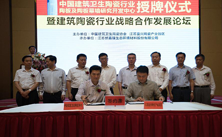 “中國建筑衛生陶瓷行業陶板及陶板幕墻研究開發中心”揭牌儀式暨建筑陶瓷行業戰略合作發展論壇在宜興紫砂賓館舉行
