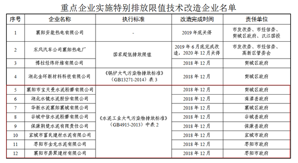 ??重點企業實施特別排放限值技術改造企業名單中包括多家水泥企業,改造執行標準為《水泥工業大氣污染物排放標準》(GB4915-2013)中表2。改造完成時間為2018年12月。