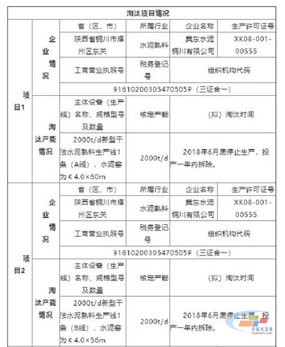 公告指出按照《國務院關于化解產能嚴重過剩矛盾的指導意見》(國發〔2013〕41號)和《工信部水泥玻璃行業產能置換實施辦法》(工信部原〔2017〕337號)要求,現將冀東水泥銅川有限公司產能置換方案進行公告。該置換方案顯示冀東水泥銅川公司將淘汰原有兩條2000t/d、一條4000t/d和一條4500t/d水泥熟料生產線,將新建一條小于8333t/d水泥熟料生產線;該方案淘汰項目中兩條2000t/d水泥熟料生產線計劃在2018年6月底停止生產,另外兩條生產線計劃在新項目投產前停產,所有淘汰項目計劃在新項目投產一年內拆除。