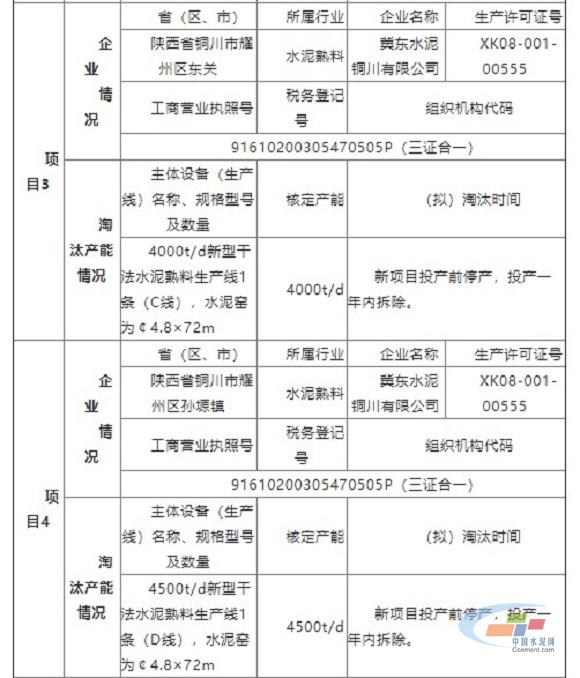 近日,陜西省工業和信息化廳發布《關于對冀東水泥銅川有限公司產能置換的公告》。