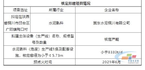 冀東水泥銅川公司產能置換將建小于8333t/d水泥熟料生產線