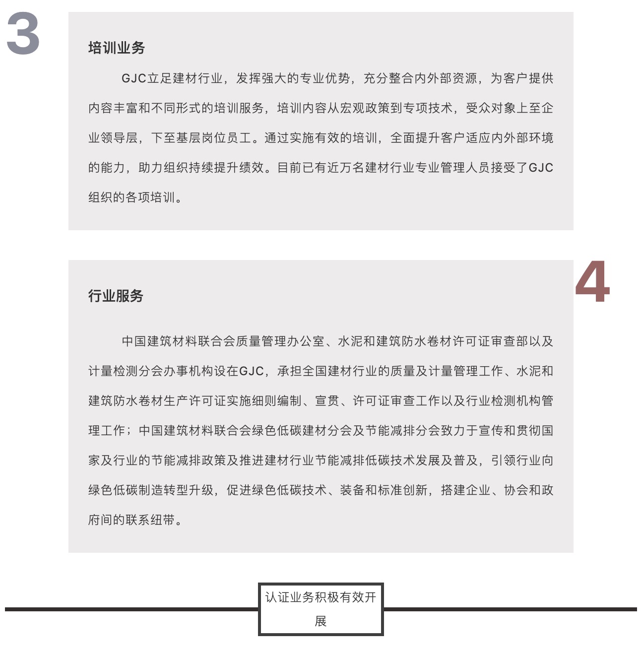 GJC在多年的認證活動中積累了豐富的認證審核經(jīng)驗,擁有一支高素質(zhì)的建材行業(yè)認證管理及專業(yè)審核員人才隊伍,他們中的絕大多數(shù)人員均有建材行業(yè)教育、工作和多年認證審核背景。基于多年的建材行業(yè)認證工作實踐,GJC長期專注于建材行業(yè)相關(guān)政策、法律法規(guī)、管理制度的研究,并為建材行業(yè)發(fā)布的相關(guān)政策、規(guī)范、技術(shù)與管理標準等提供了大量技術(shù)支持。