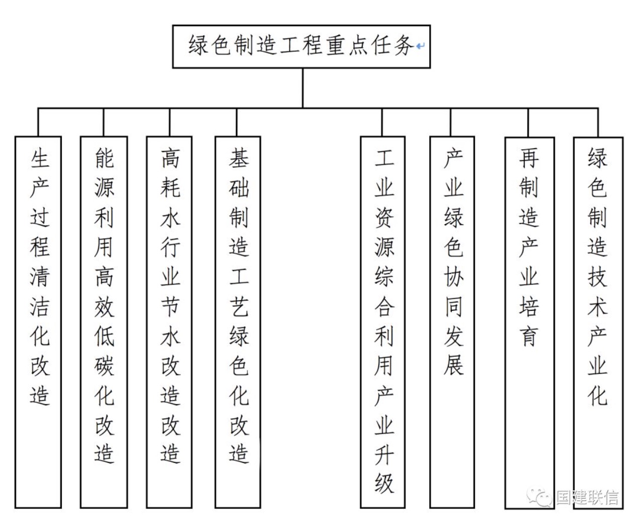 其中綠色制造工程的重點任務分為傳統(tǒng)制造業(yè)綠色化改造示范推廣、資源循環(huán)利用綠色發(fā)展示范應用、綠色制造創(chuàng)新及產(chǎn)業(yè)化示范應用、綠色制造體系構(gòu)建試點四個方面。下圖具體列出了幾項重點任務的主要內(nèi)容,對于建材行業(yè)這類傳統(tǒng)制造業(yè)而言,生產(chǎn)過程清潔化、能源利用高效低碳化、水資源利用高效化等改造是企業(yè)應關(guān)注的重點。