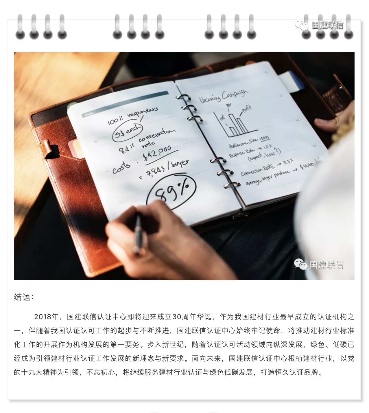 國建聯(lián)信認證中心自1988年開展認證工作,至今已走過了30年光輝歷程。中心始終堅持專業(yè)化、權(quán)威化的發(fā)展定位,努力開拓創(chuàng)新,時至今日已發(fā)展成為一個功能齊全、信譽卓著的品牌認證機構(gòu)。眾多建材知名企業(yè)與品牌在GJC認證,在國家公布的60家重點支持水泥大型企業(yè)(集團)中,中心已認證了59家,中心的認證標志出現(xiàn)在全國水泥市場上約80%的水泥產(chǎn)品上。2007年GJC榮獲國家認監(jiān)委組織的全國認證機構(gòu)認證服務質(zhì)量綜合評價第一名。自2010年開始,中心連續(xù)多年被中國合格評定國家認可委員會在認可風險評級中評為A級機構(gòu)。2014、2016年中心在國家認監(jiān)委組織的CCC指定認證機構(gòu)專項監(jiān)督量化綜合評分中獲得第一名。