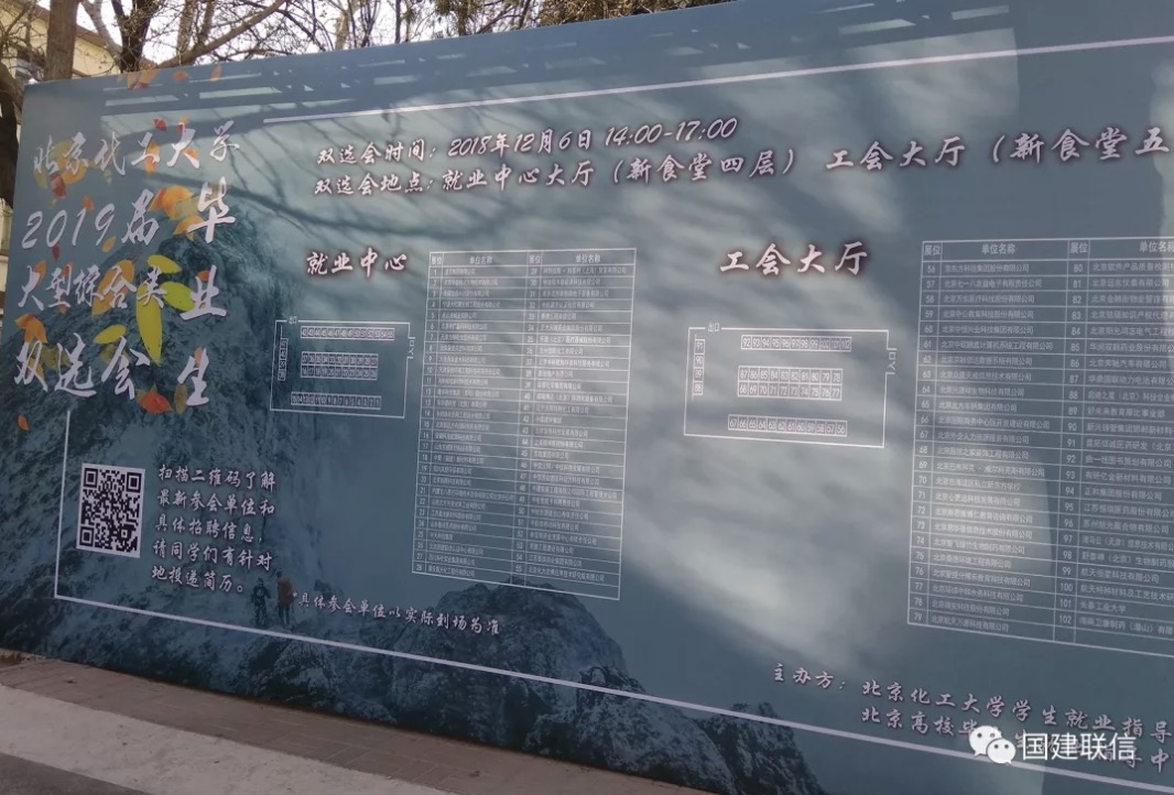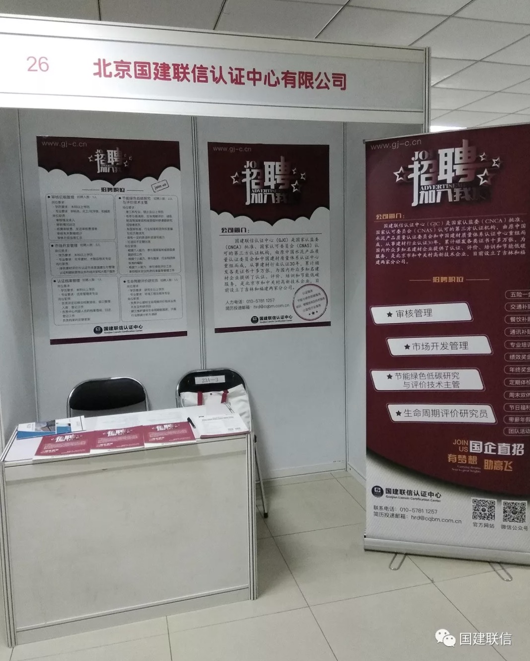 2018年底,各大高校陸續舉行了畢業生雙選會,國建聯信認證中心作為各大學院的緊密戰略合作單位之一,由中心人力資源部組織人員分別參加了北京科技大學和北京化工大學的雙選會。