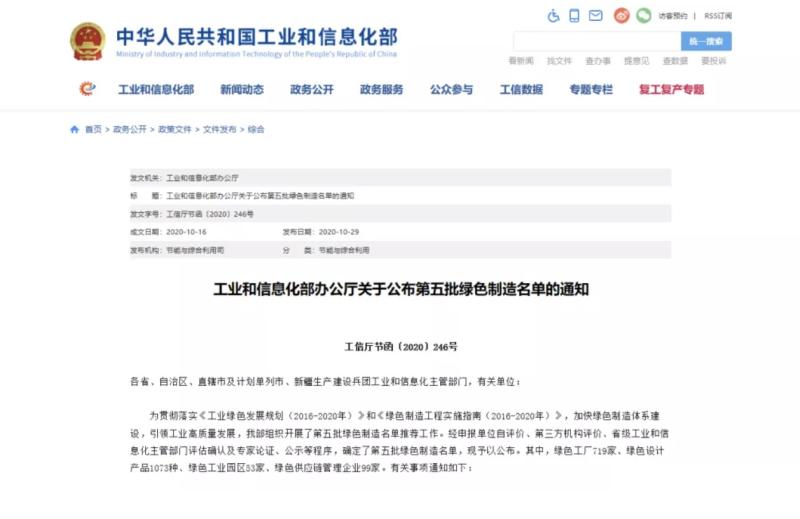國建認證第五批綠色制造示范入選名單
