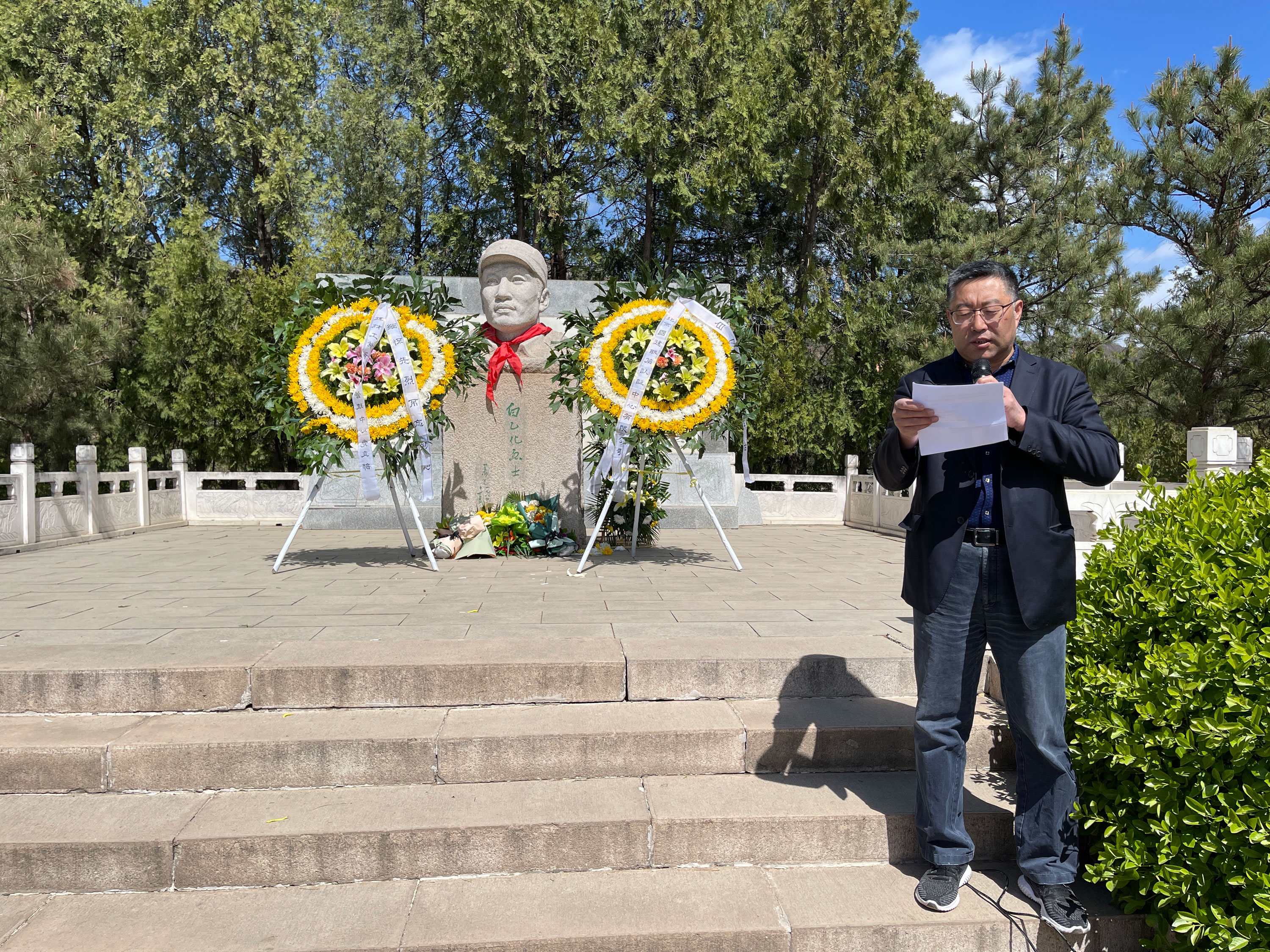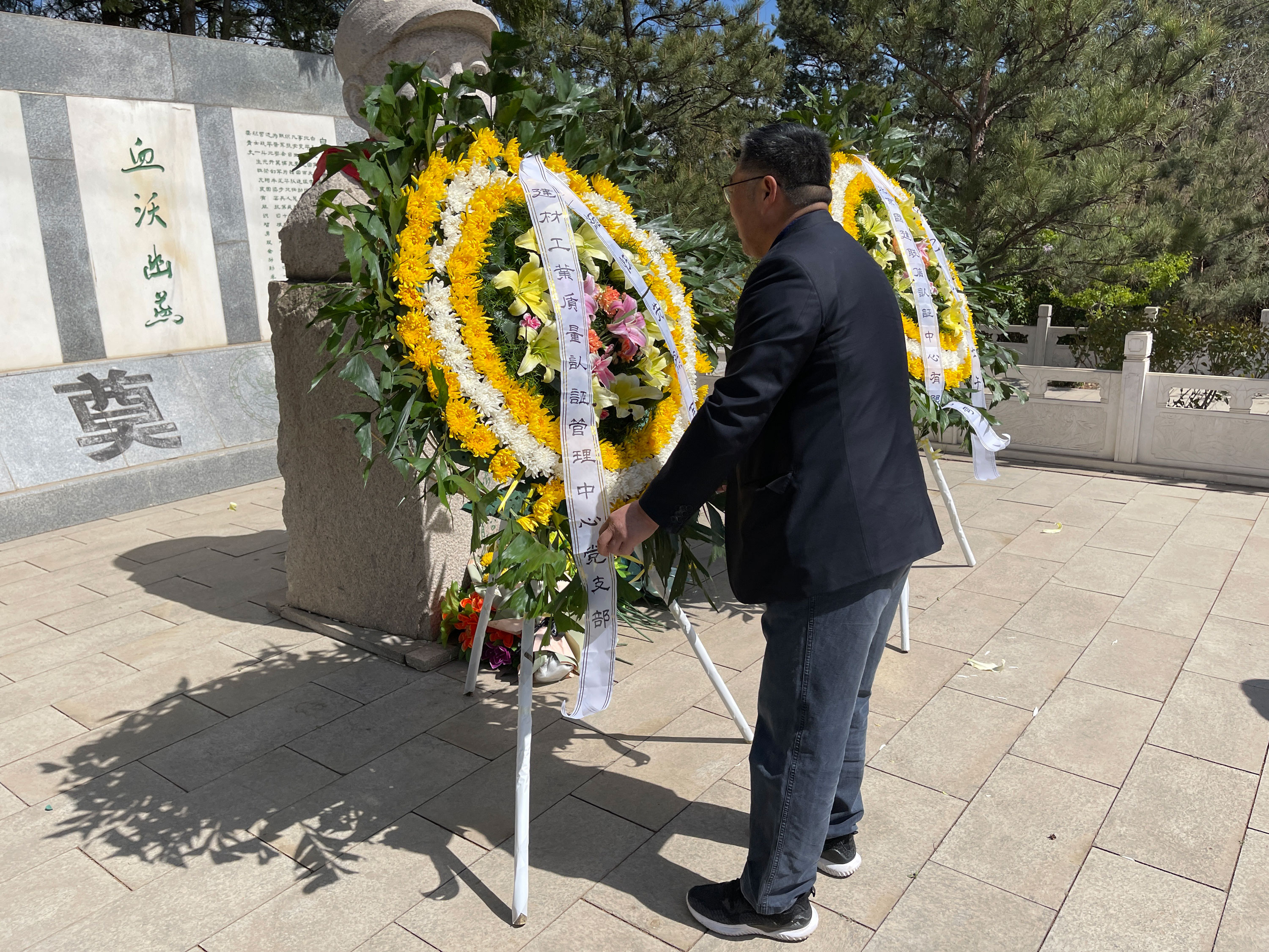 在白乙化烈士的紀念碑前,認證中心黨員、職工懷著崇敬的心情向烈士敬送花籃,并鄭重地為白乙化烈士默哀,表達了對白乙化烈士以及無數在革命斗爭中英勇犧牲的革命先烈的沉痛追憶和深切緬懷。