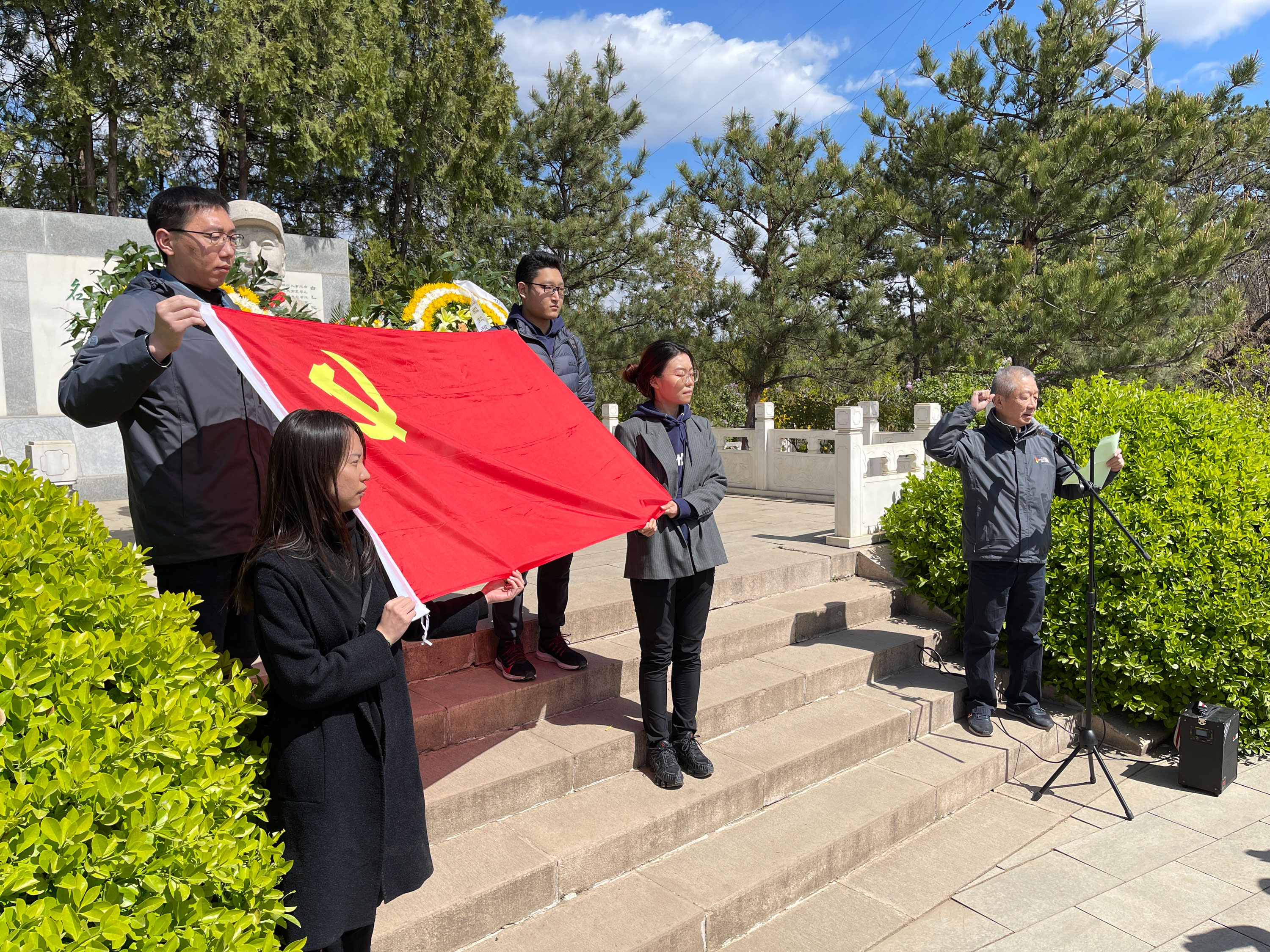 黨支部書記武慶濤同志在祭奠儀式上發表講話。他表示,黨的百年輝煌歷史是英烈們不惜用生命和鮮血換來的,我們今天幸福美好的生活,是一批又一批革命先烈用堅定信念和英勇犧牲換來的。他們的革命精神時刻激勵著我們奮勇前進。我們是革命的后代,悼念革命先烈,就是要用革命先烈的崇高理想、奮斗精神、不朽功勛,來洗滌我們的思想、凈化我們的靈魂、提升我們的境界,使我們永葆昂揚的革命斗志;就是要以他們為榜樣,繼承和發揚他們的革命精神和光榮傳統。認證中心全體黨員要增強“四個意識”、堅定“四個自信”、做到“兩個維護”,在當前開展的黨史學習教育活動中,不斷提高政治判斷力、政治領悟力、政治執行力,實現學黨史、悟思想、辦實事、開新局。在推進認證中心改革發展開拓進取,實現建材行業“宜業尚品、造福人類”新發展目標、建設社會主義現代化國家新征程中作出應有貢獻。