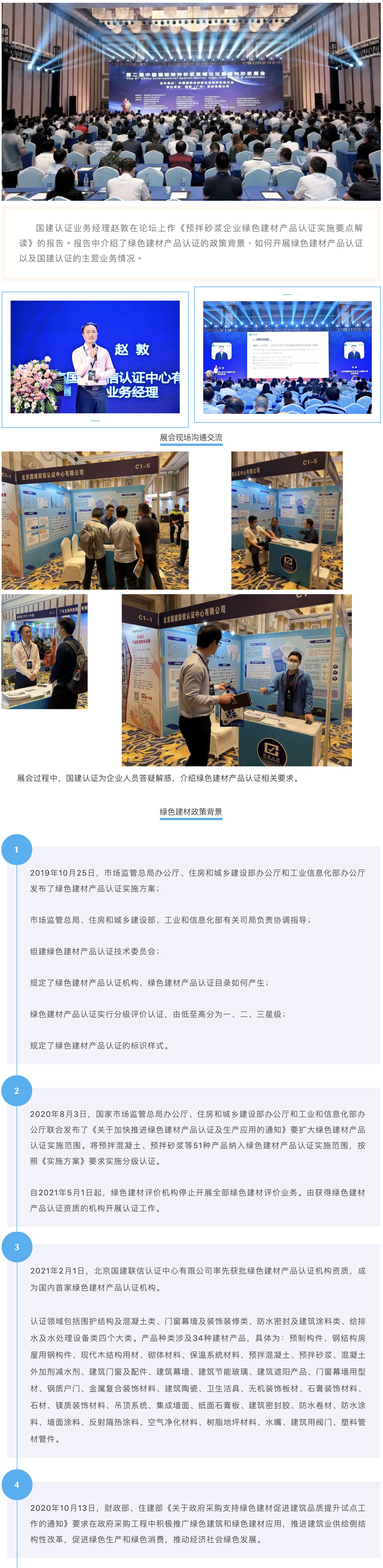 國建認證積極參加第二屆中國國際特種砂漿高端論壇暨特種砂漿展會
