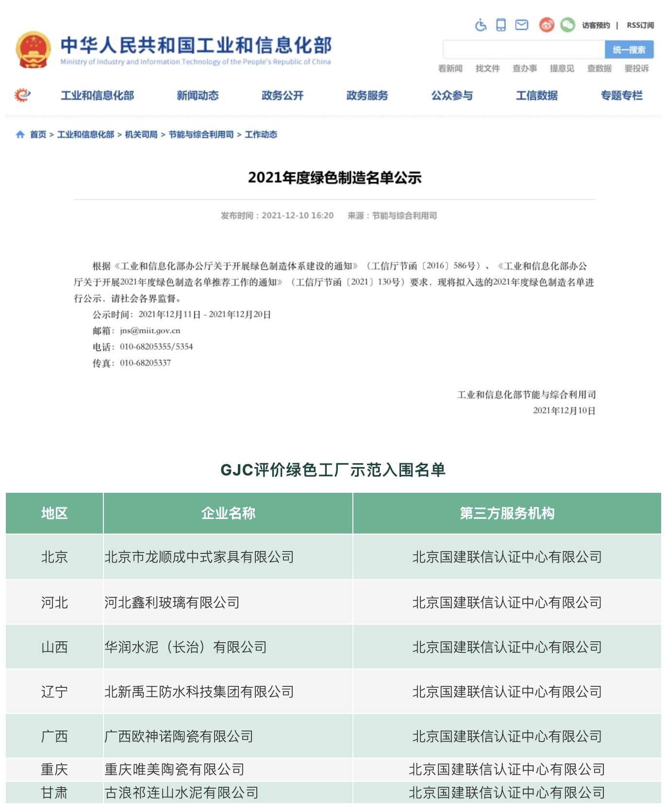 近日,工信部第六批綠色制造示范名單面向社會公示,包括673家綠色工廠、990種綠色設計產品、52家綠色園區以及107家綠色供應鏈管理示范企業入圍。建材行業有百余家綠色工廠、百余種綠色設計產品和近十家綠色供應鏈企業入圍名單,綠色發展再次取得豐碩成果。國建聯信認證中心作為建材行業權威的綠色低碳服務機構,憑借專業化、高水平服務優勢,本次共有7家企業經評價入圍綠色工廠示范名單。