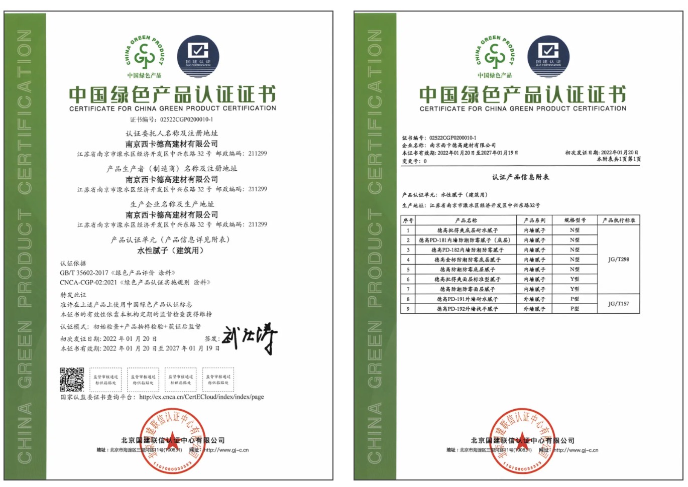 建材行業發展正在由粗放型逐步轉型為精細型,在轉型過程中,不斷有企業生產出綠色低碳高質量的產品,以滿足消費者追求美好生活的愿望,西卡德高在這個過程中起到了很好的示范作用。中國綠色產品認證證書是認證機構代表國家頒發給企業的最高榮譽證書,對企業來說,既是對企業追求綠色低碳高質量發展的肯定,同時又為企業帶來了巨大的市場效應,消費者在挑選產品時可以根據中國綠色產品標識購買到綠色健康高質量的產品。