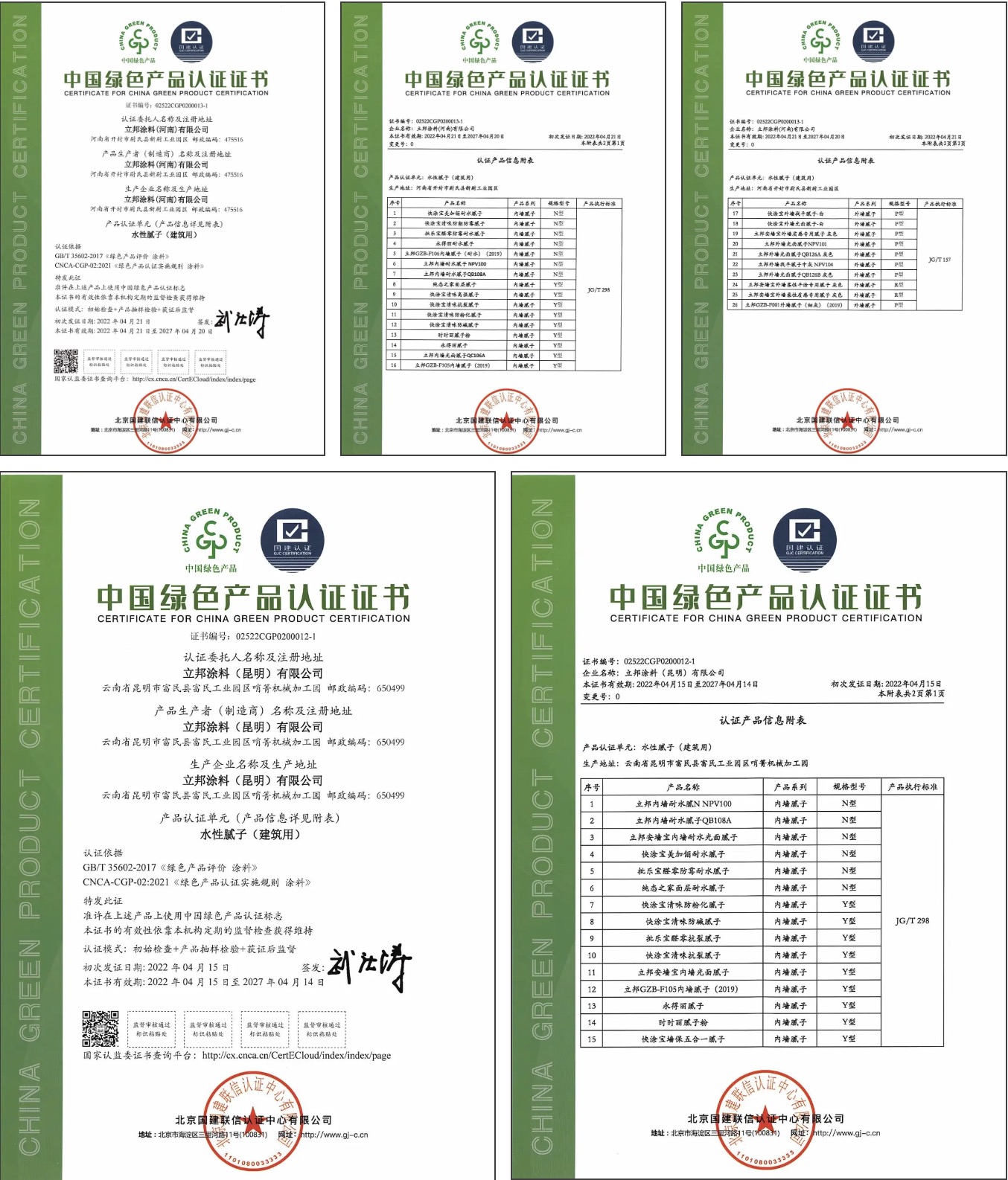 近日,立邦旗下三家工廠:立邦涂料(湖北)有限公司、立邦涂料(昆明)有限公司、立邦涂料(河南)有限公司喜獲國建認(rèn)證頒發(fā)的“中國綠色產(chǎn)品認(rèn)證證書”。
