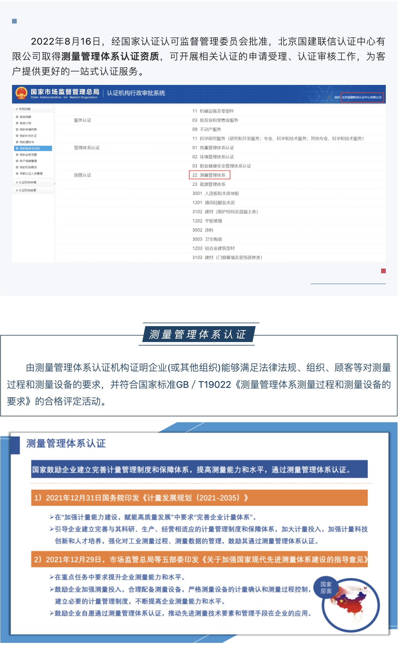 國建聯(lián)信認證中心獲批測量管理體系認證資質(zhì)