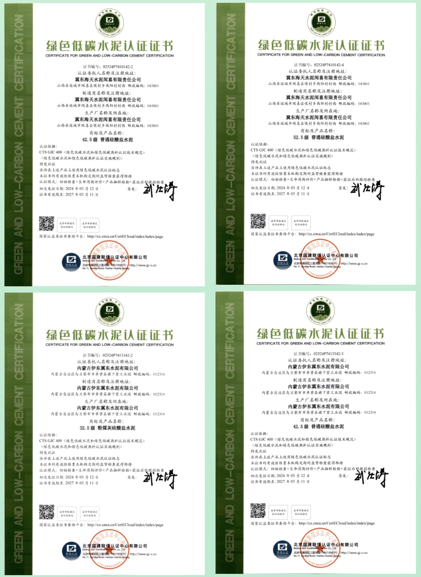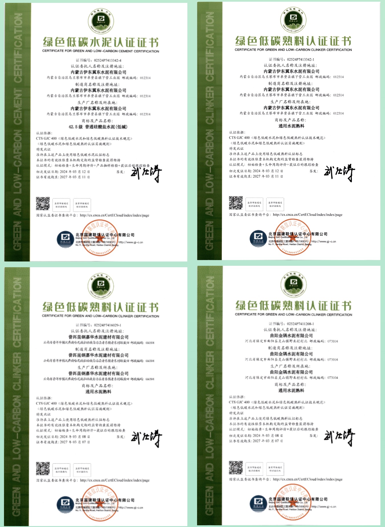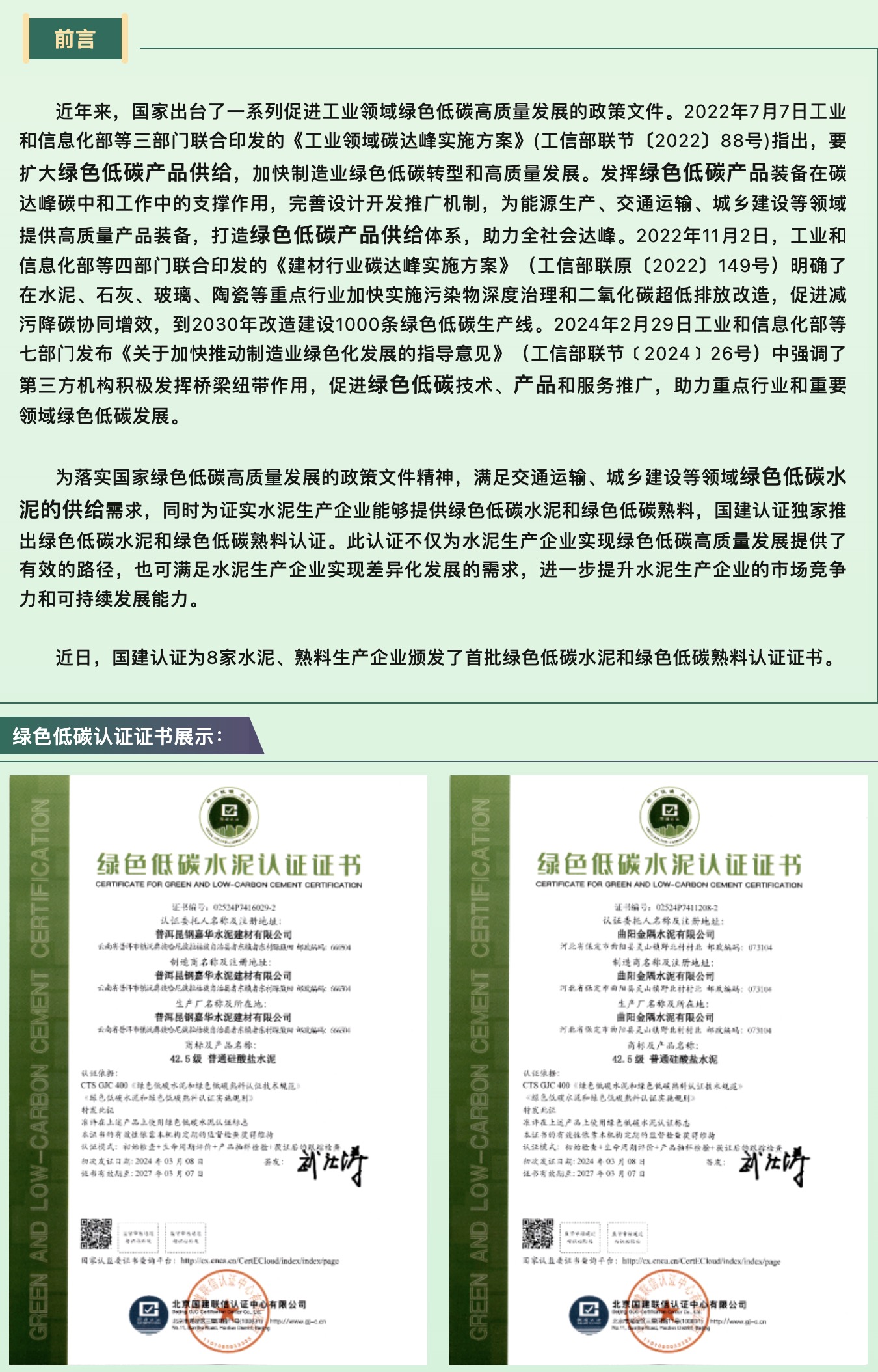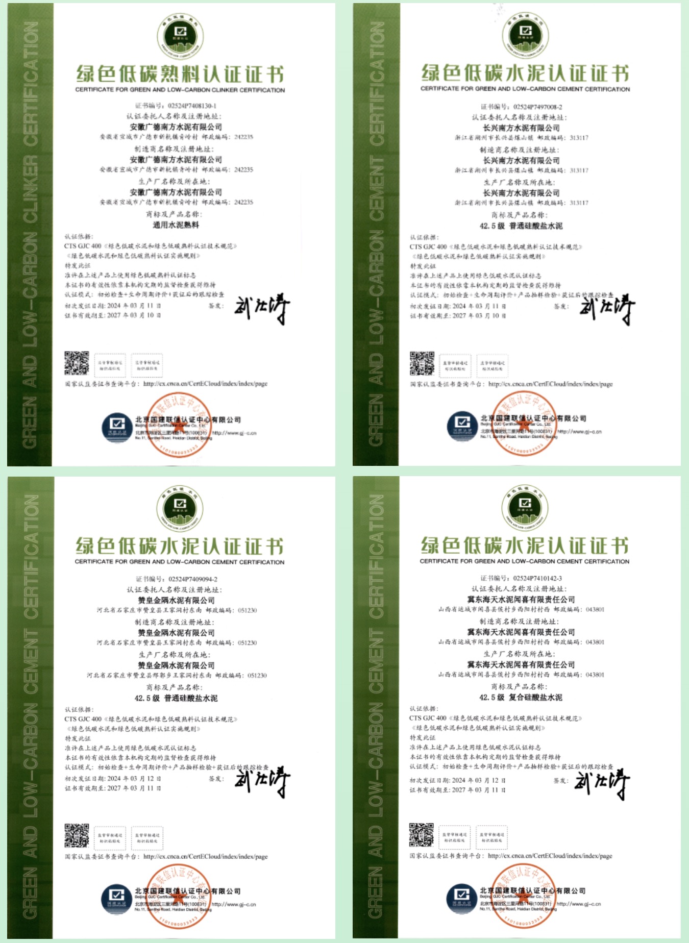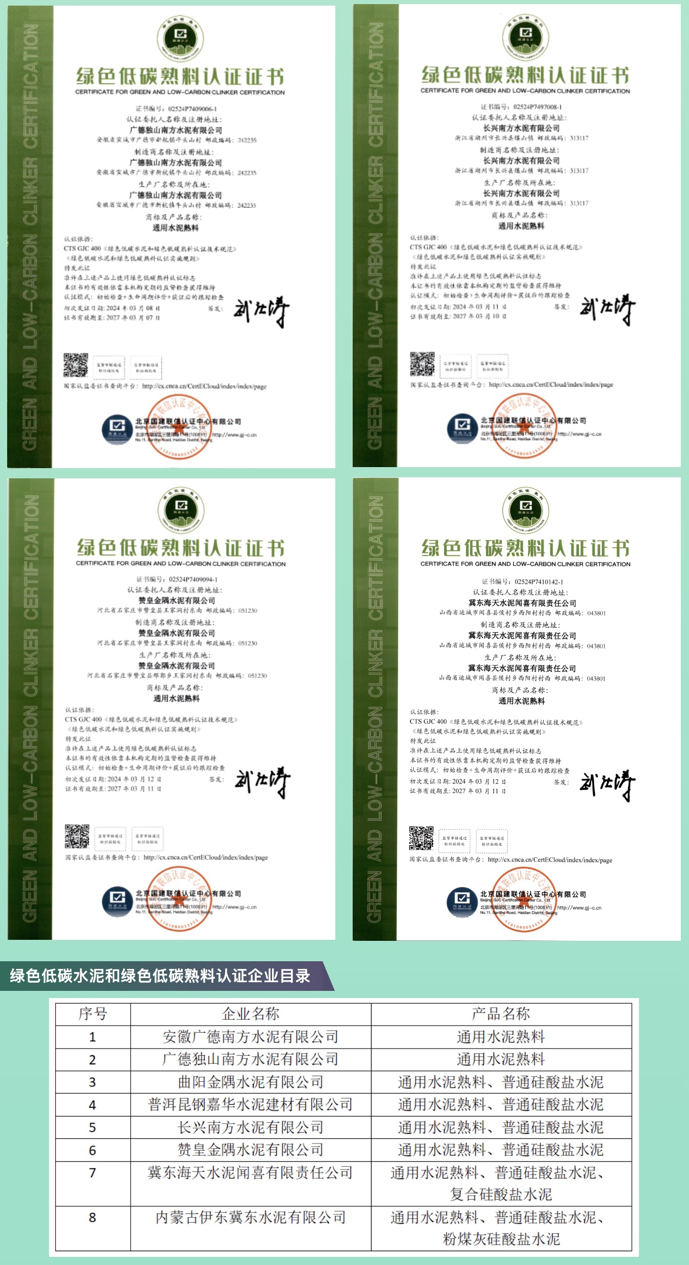 國建認(rèn)證頒發(fā)首批綠色低碳水泥和綠色低碳熟料認(rèn)證證書