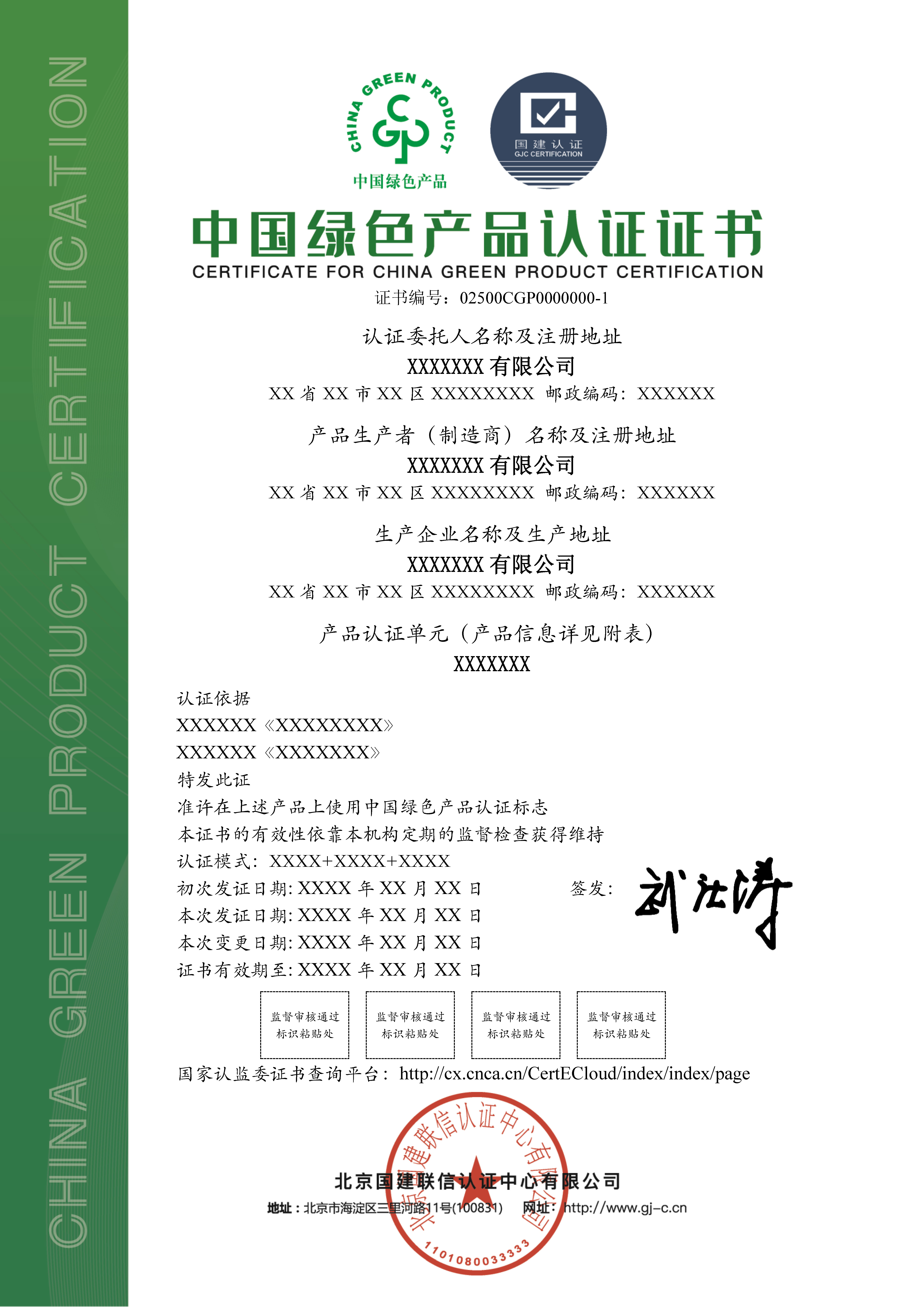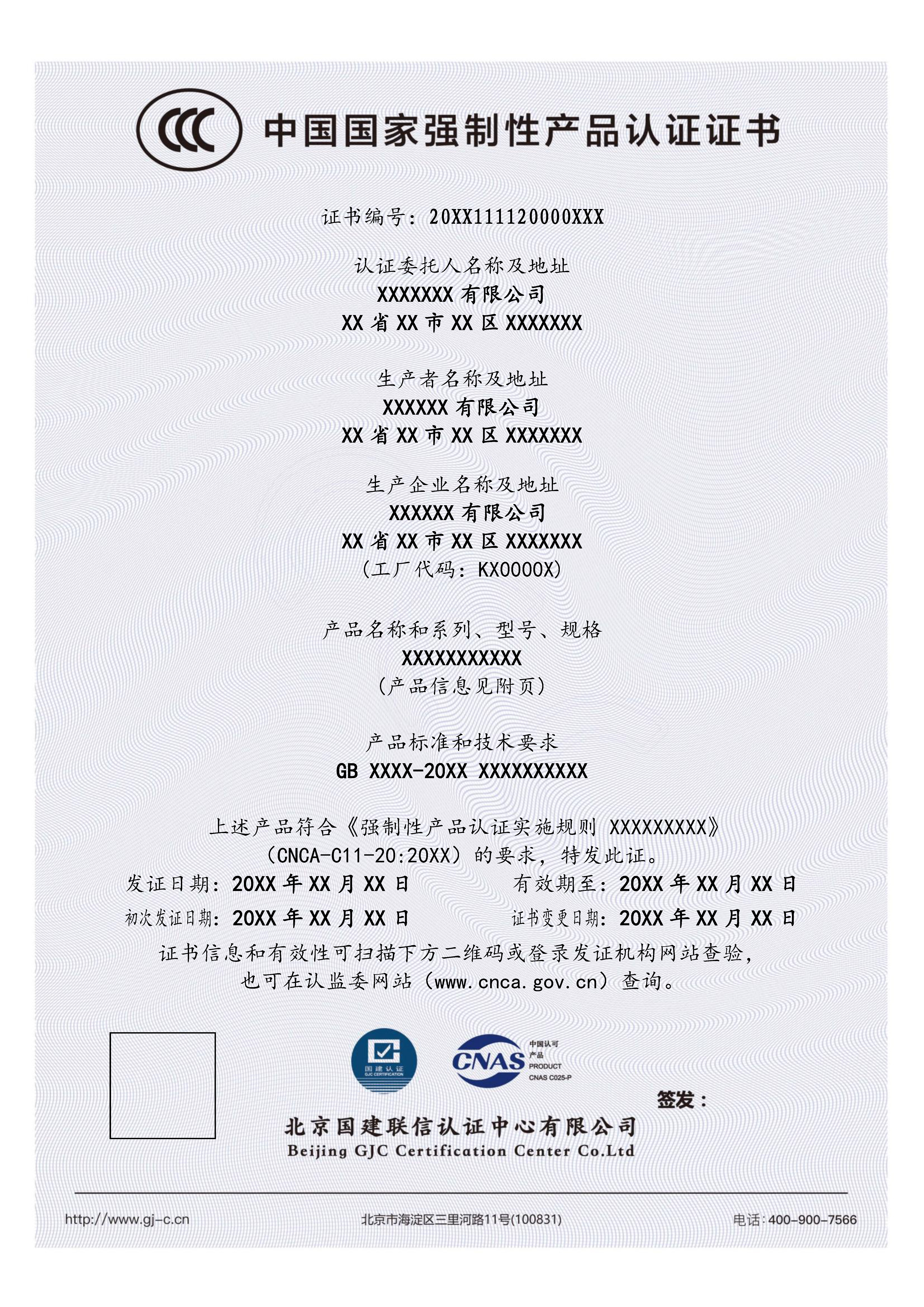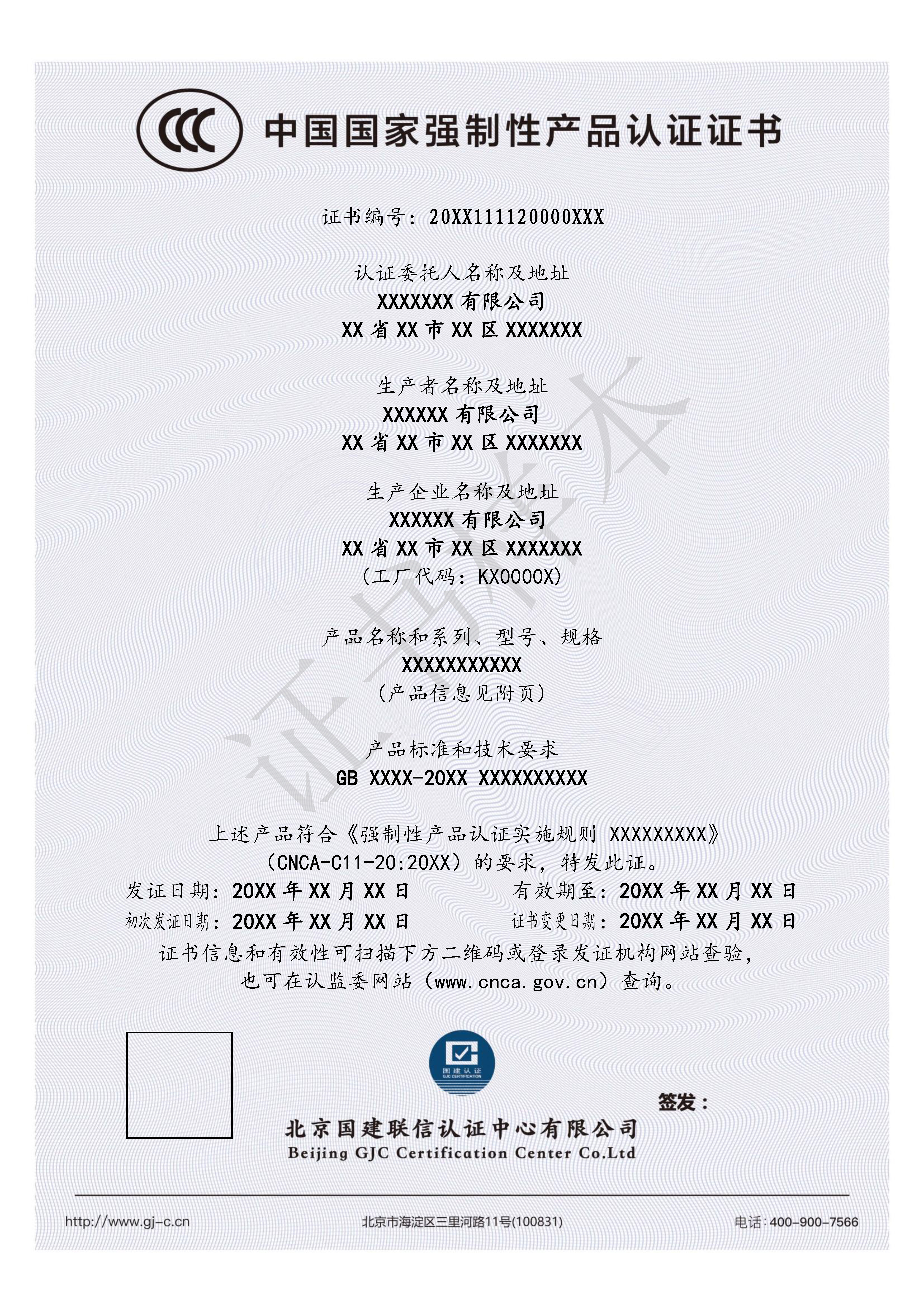 強制性產品認證證書 (電子證書,僅展示未簽章樣式) |